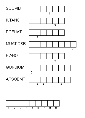 Instrucciones: 1. Debes encontrar el orden correcto de las letras y formar las palabras. 2. Siguiendo las claves encontradas debes resolver la palabra oculta. |